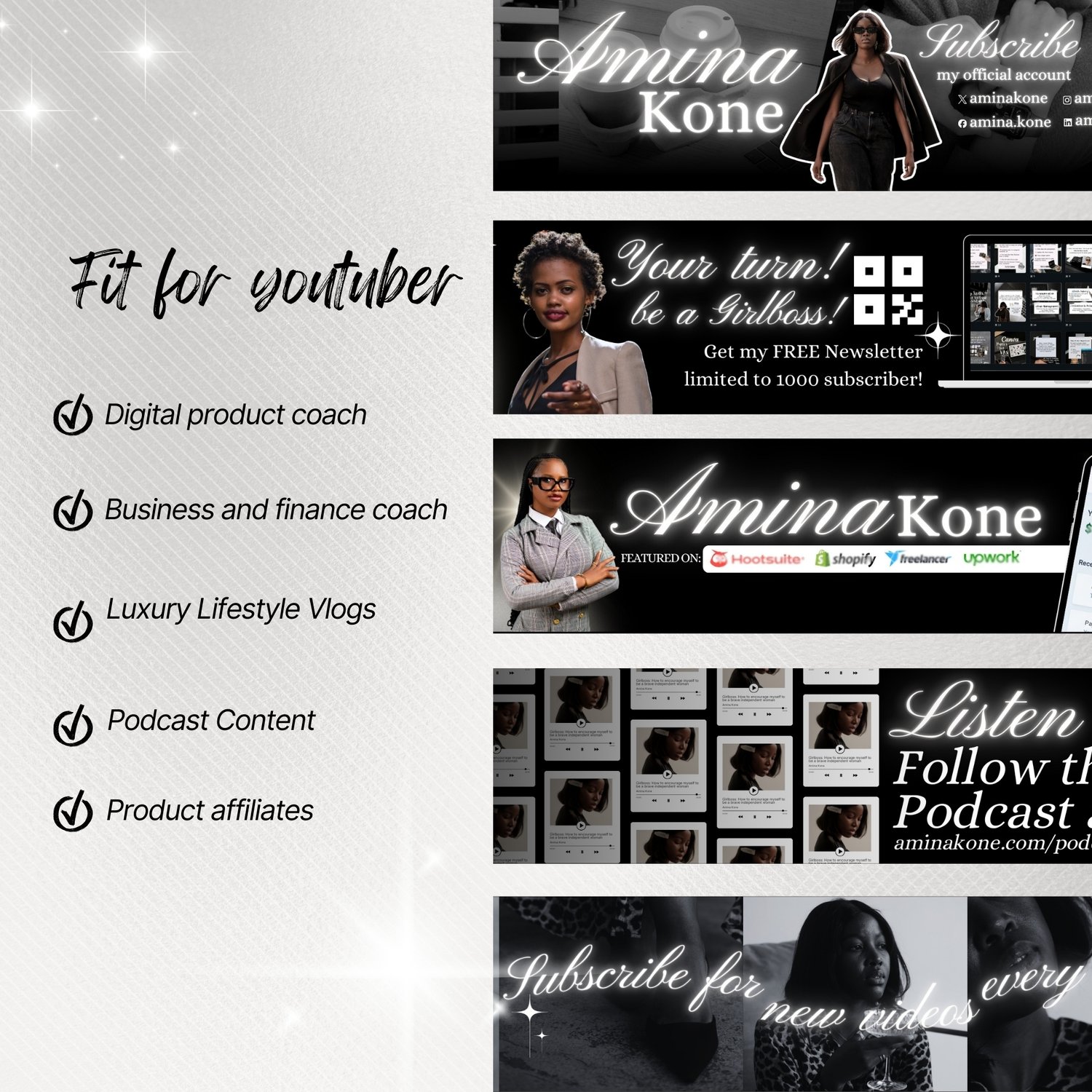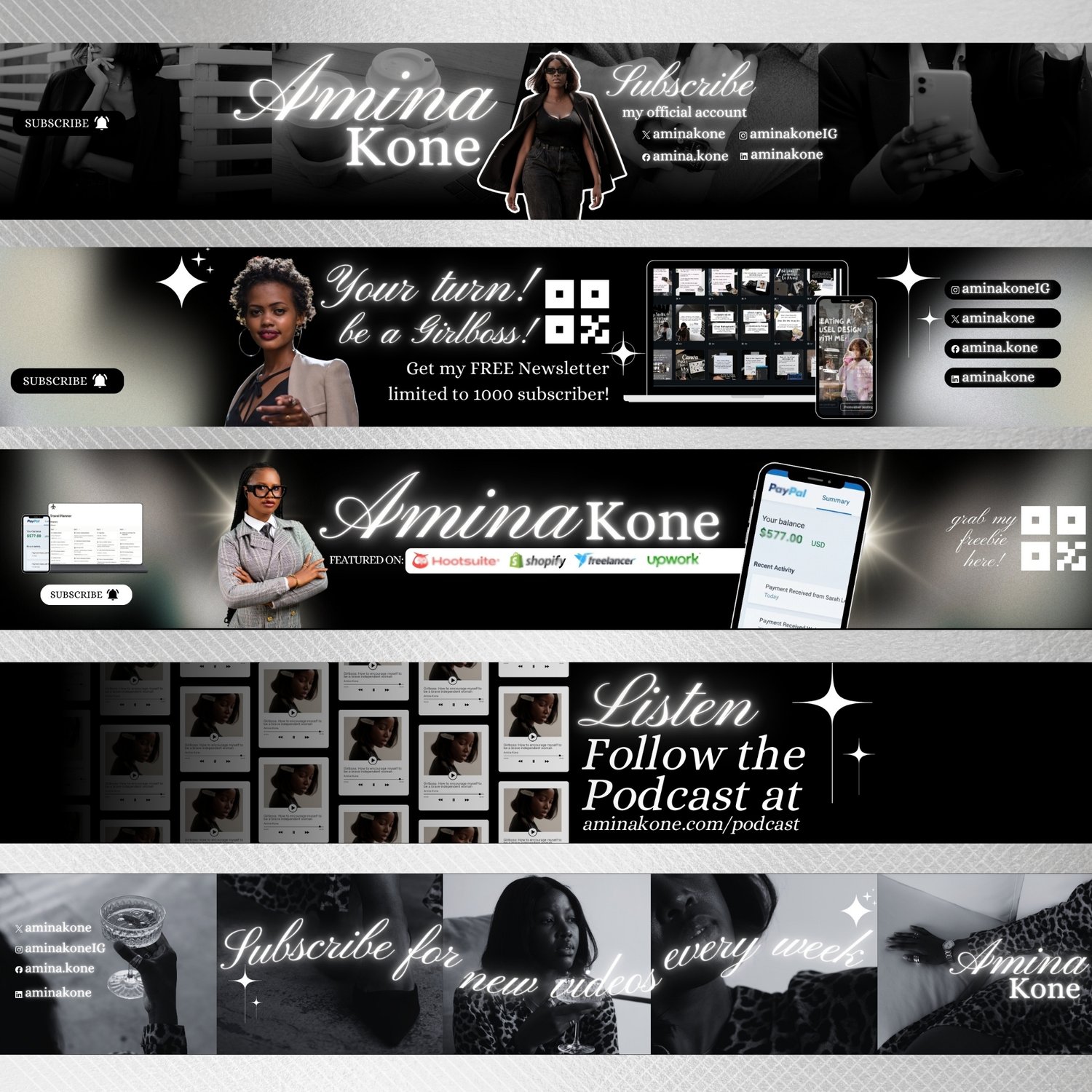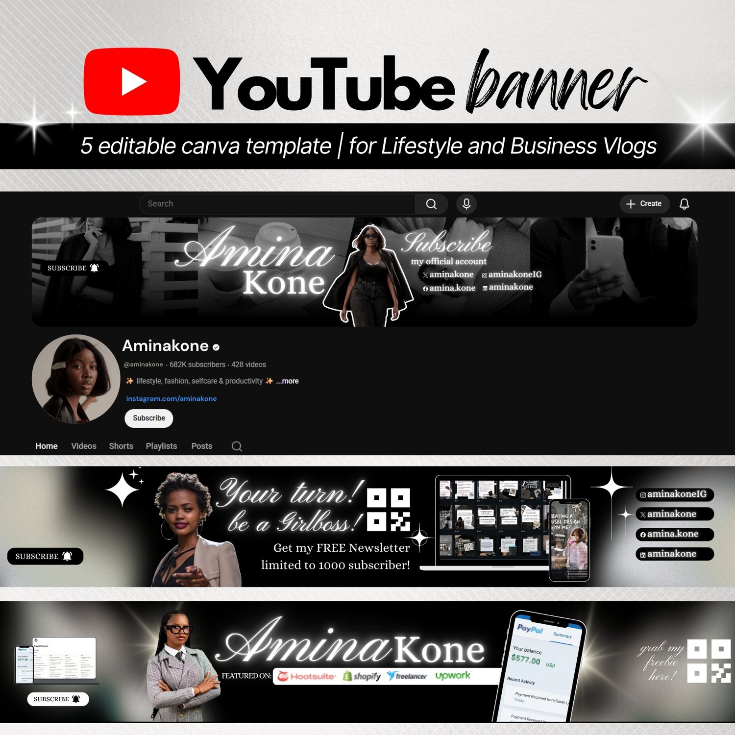 5 Youtube Banner Template | Black Business Girlboss