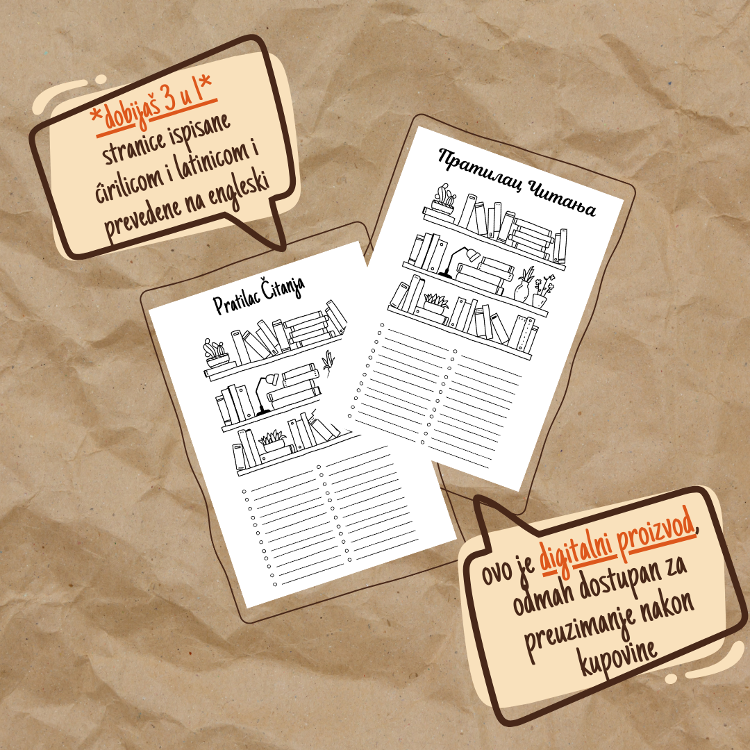 Pratilac Čitanja: Proslavi svaku pročitanju knjigu pomoću ove liste za praćenje čitanja. Nakon što pročitaš knjigu, oboji po jednu na polici, i zabeleži naslov u listi ispod. Na kraju godine se priseti svojih omiljenih naslova i autora.