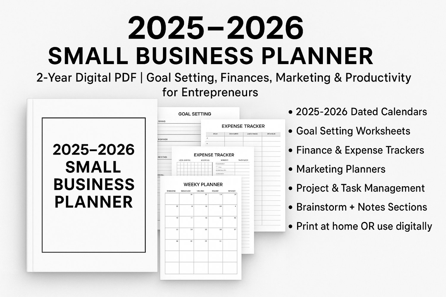 2025–2026 Small Business Planner | 2-Year Digital PDF | Goal Setting, Finances, Marketing & Productivity for Entrepreneurs