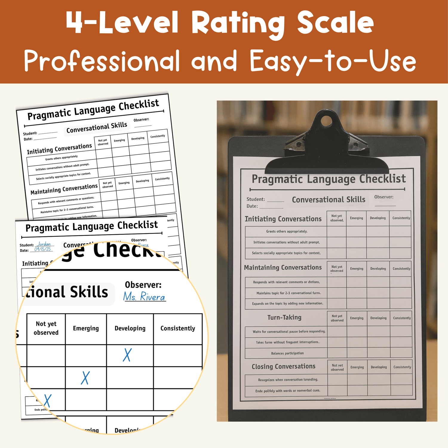 This Pragmatic Language Checklist is a professional, easy-to-use tool for assessing and monitoring social communication skills. Designed for SLPs, special education teachers, and classroom educators, it helps track how students use language in real-world situations.
