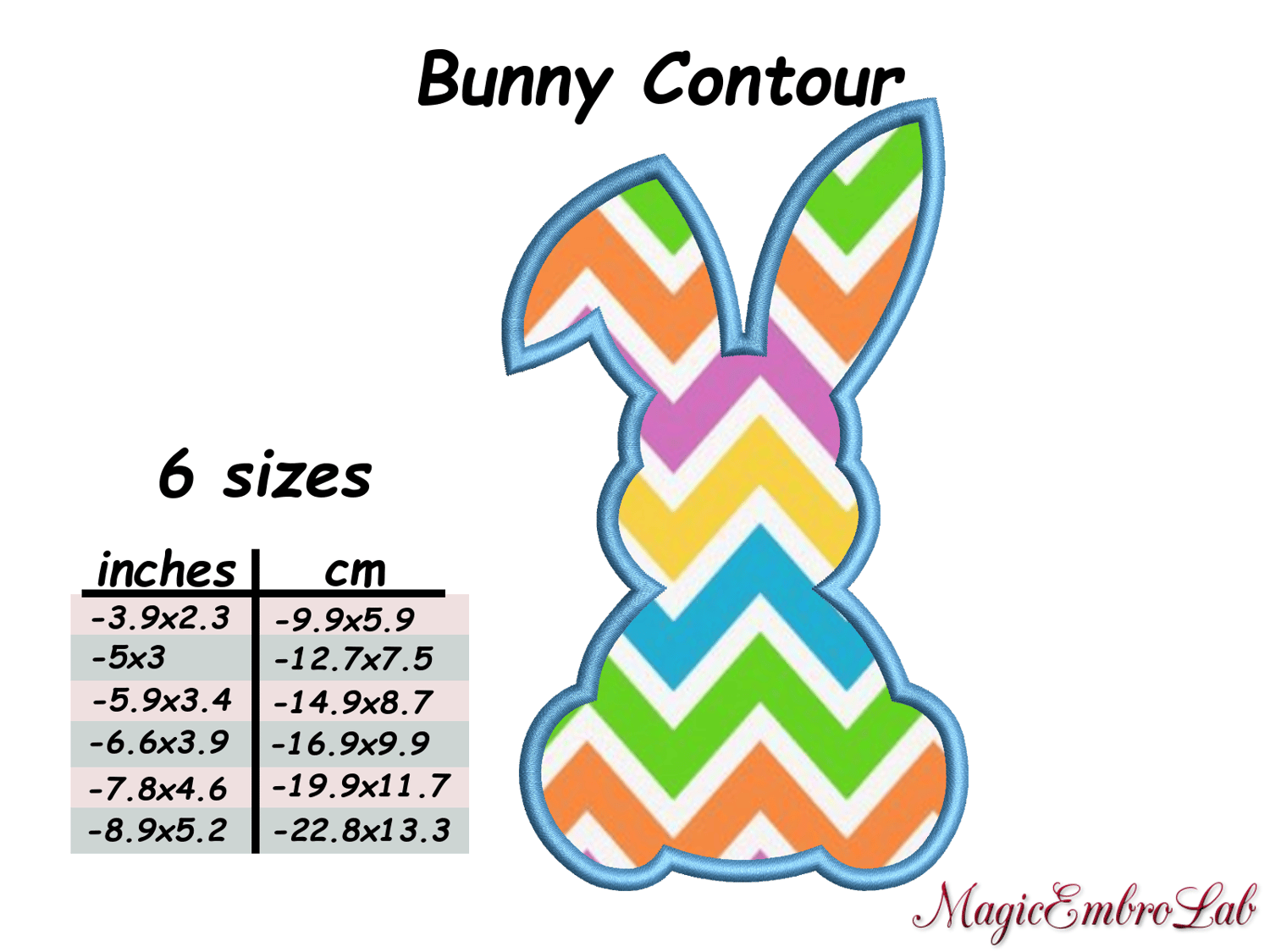 Easter Bunny Contour APPLIQUE, 6 sizes, Instant Download