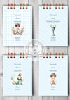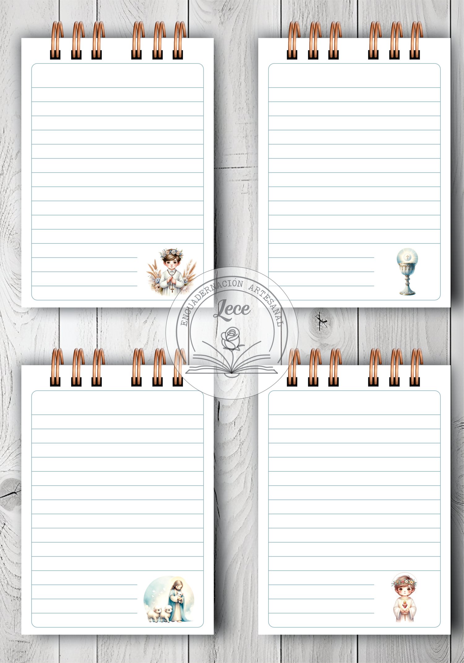 - 4 modelos de interiores de 100 hojas rayadas con diseño y colores a tono de las portadas con sus variantes para imprimir en tamaño A6 (10,5 x 14,8 cm) para anillado SUPERIOR.