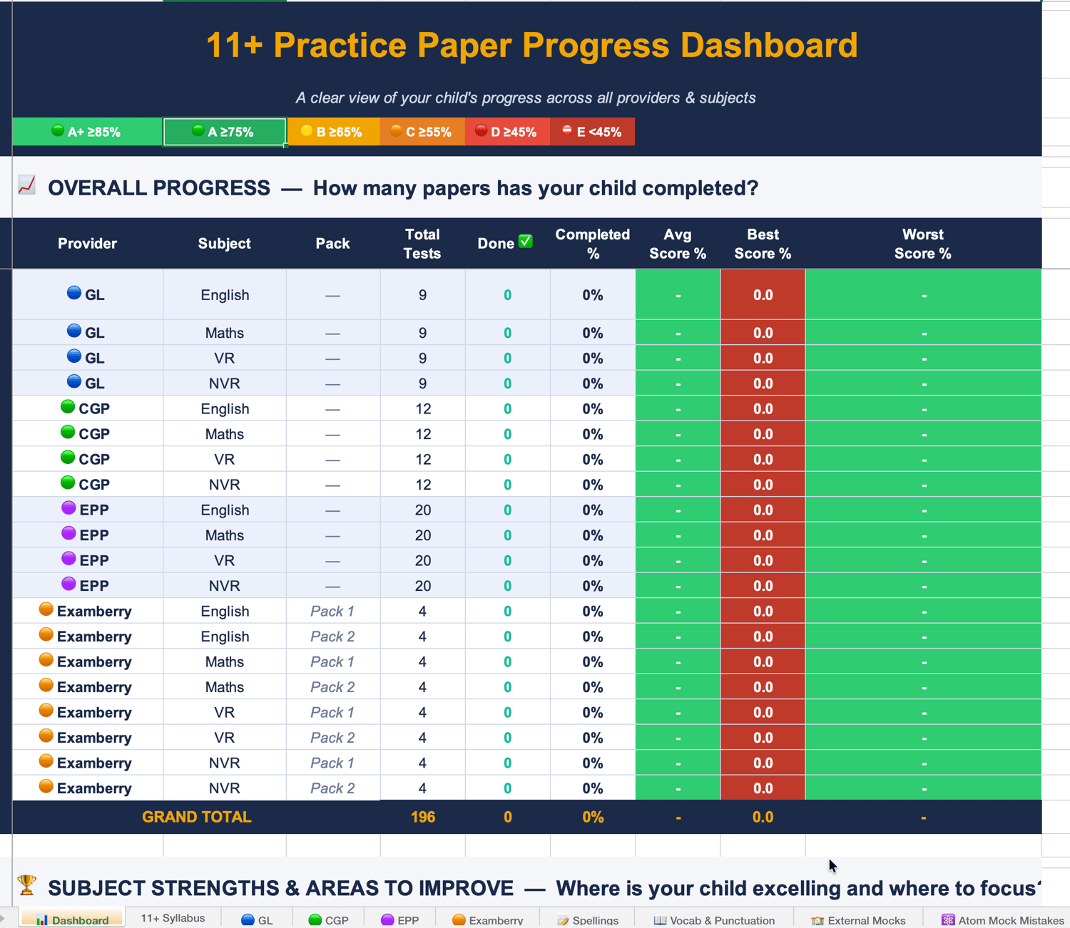 Whether you're just starting out or already working through a pile of practice papers, this spreadsheet grows with your child and makes progress visible in a way that motivates rather than stresses.