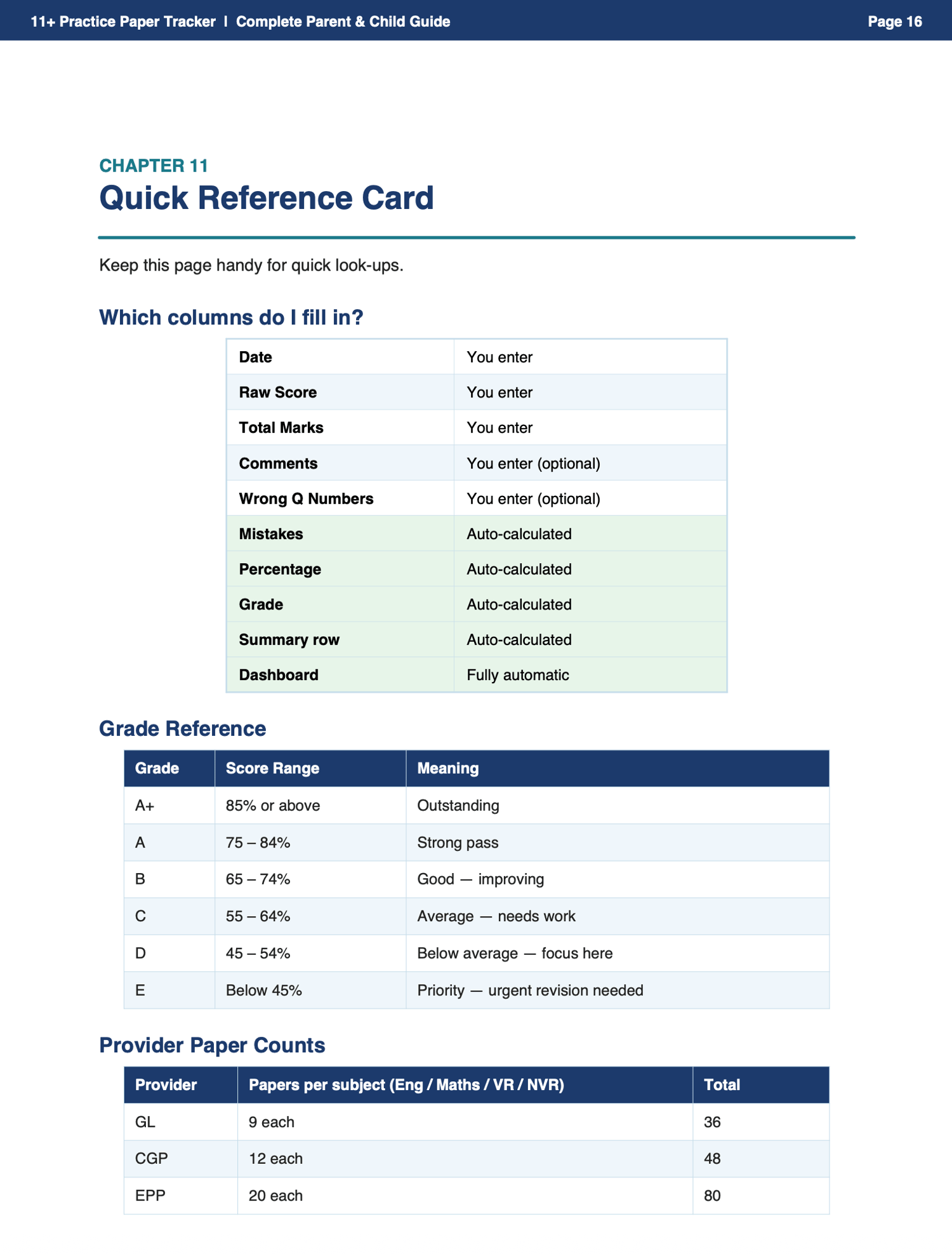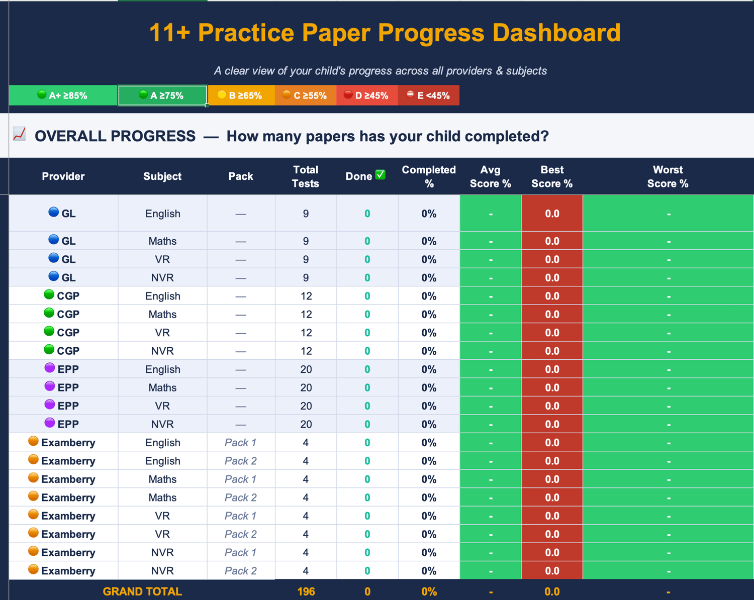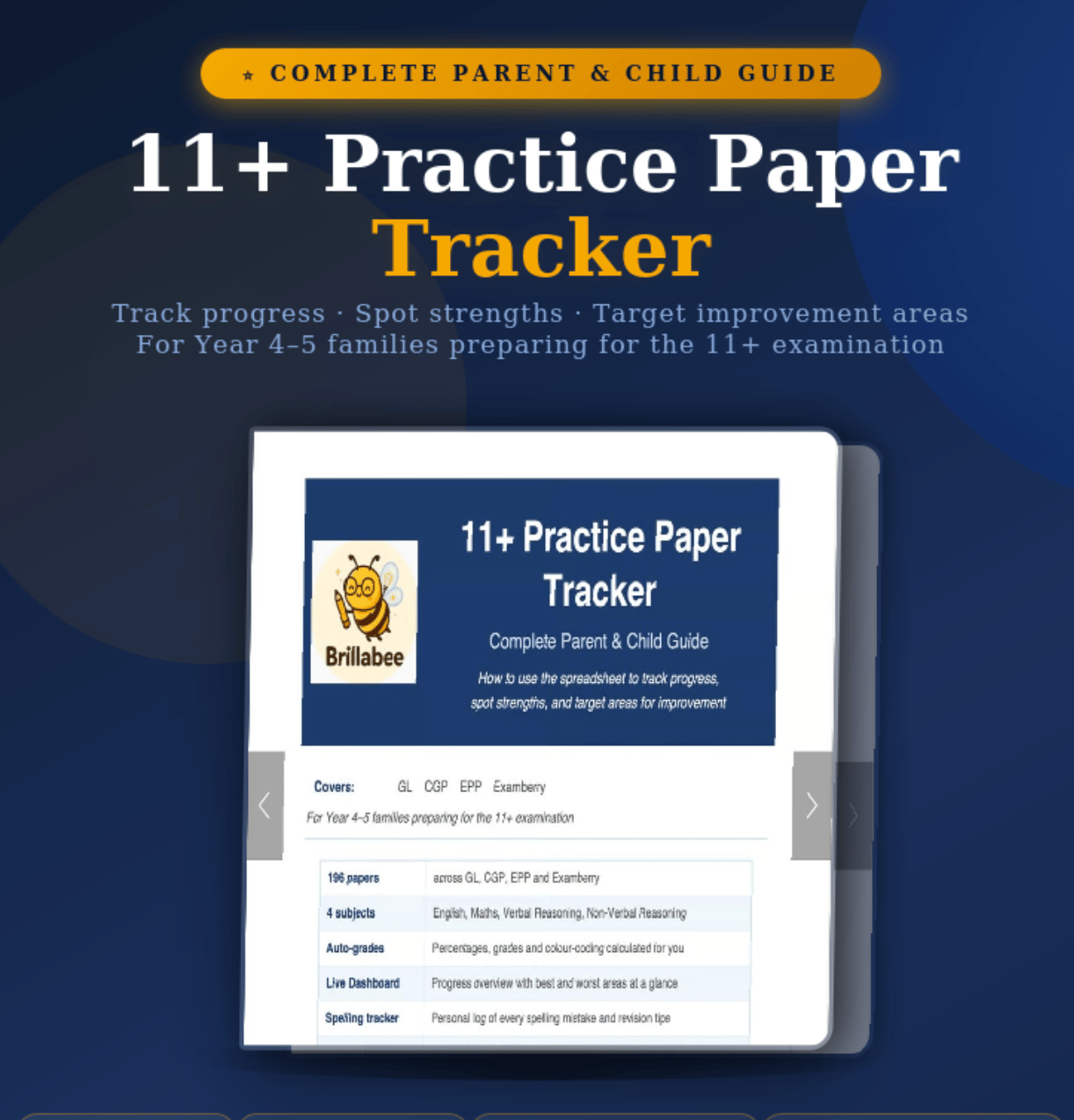 11+ Practice Paper Tracker | Excel Spreadsheet + Parent Guide | GL, CGP, EPP & Examberry | 196 Papers