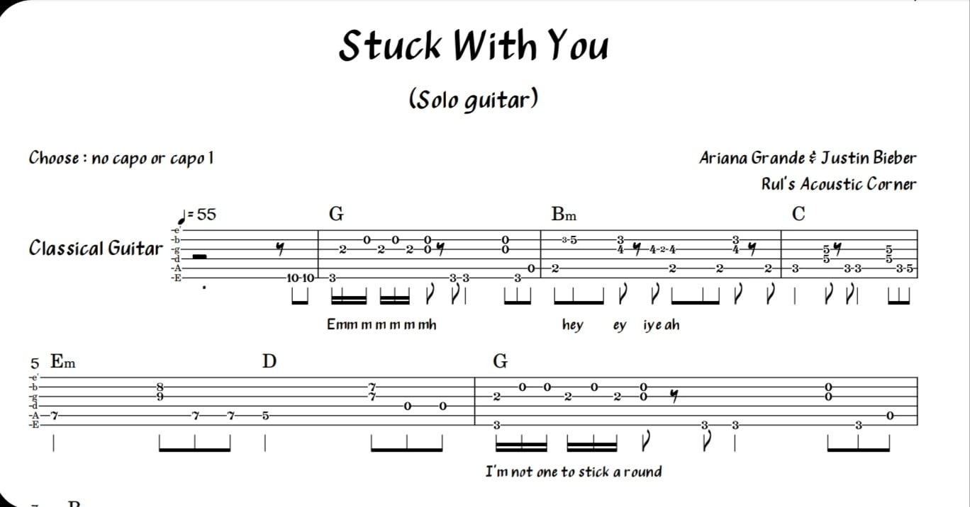 Instrumental Ariana Grande with Justin Bieber - Stuck With You Solo Guitar Musical Notes Tabs High Quality PDF Video Download