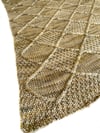 Caela is an asymmetrical triangular shawl knit from one corner featuring a bold, textured cable pattern. Caela is completely customisable with regards to size.