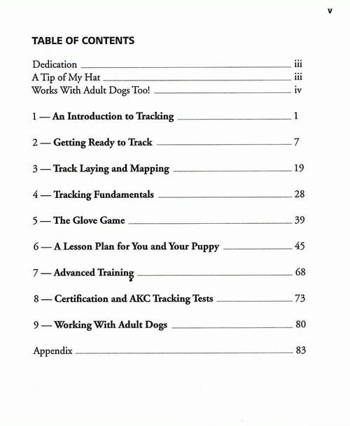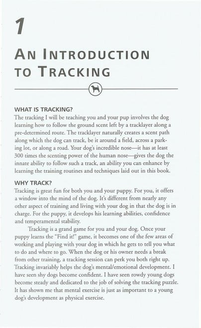 An excellent book that explains how to teach, motivate and solve problems in training a puppy - or adult dog - to track. Every aspect of tracking is covered, from terminology to incrementally teaching each week's lesson. One of the highlights is the sidebars with tips that make training a puppy to track a delight!