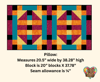 Pillow sham quilt front is 38.28" X 20.5" Blocks are traditional pieced blocks.