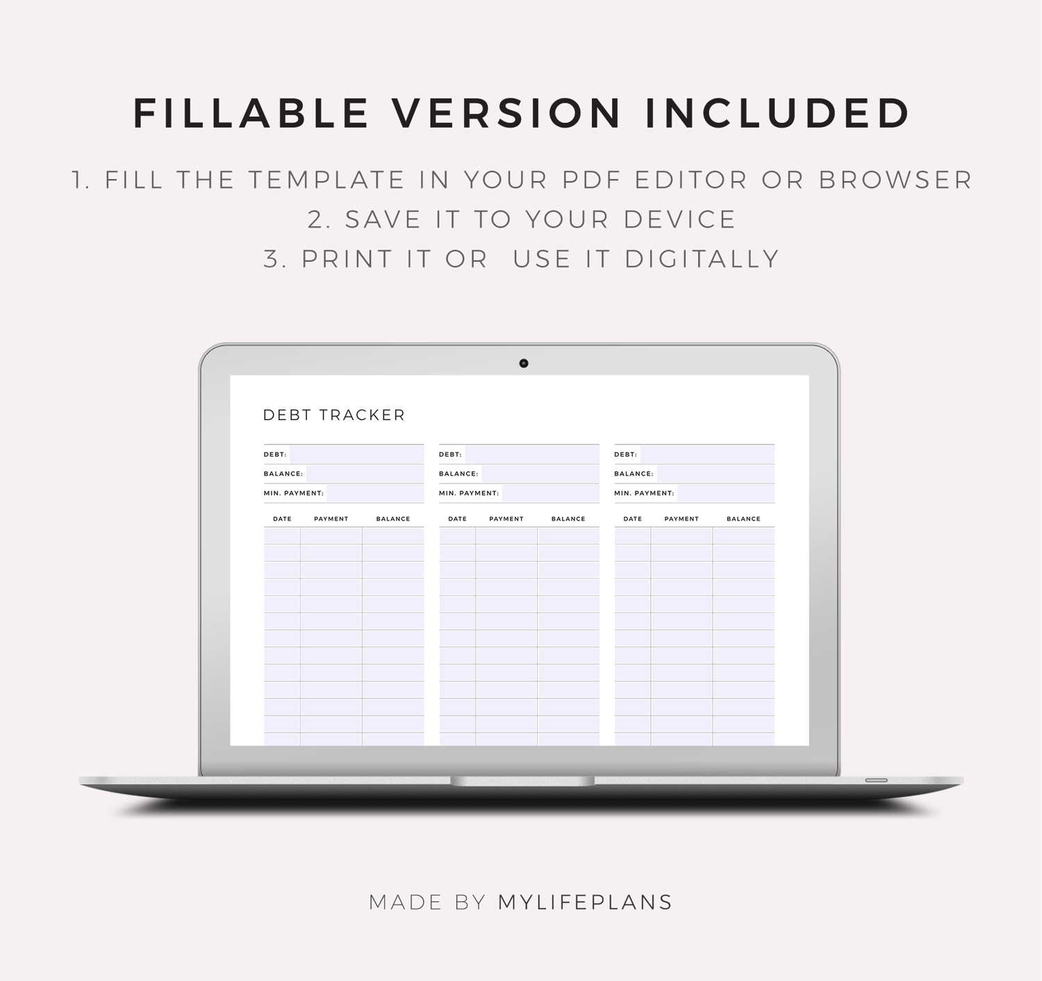 This is a printable debt tracker — just download, print, and start using it right away.