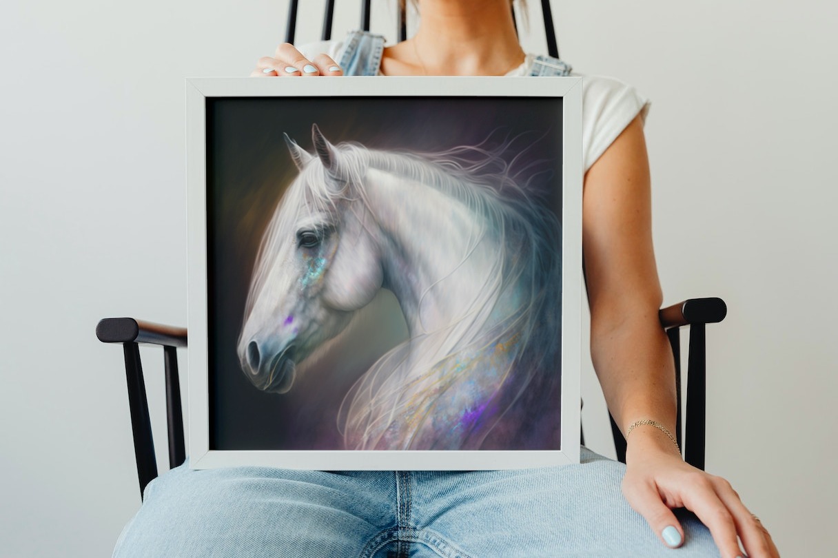 4 X WHITE HORSES ON A BACKGROUND