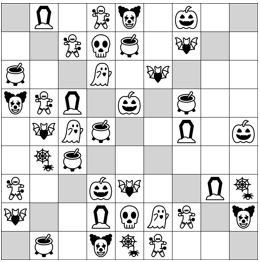 Experience a thrilling challenge with our digital collection of Halloween Picture Sudoku puzzles! Instead of traditional numbers, you'll be using a variety of delightfully eerie Halloween-themed images, including ghosts, pumpkins, and creepy clowns, to complete each unique puzzle.