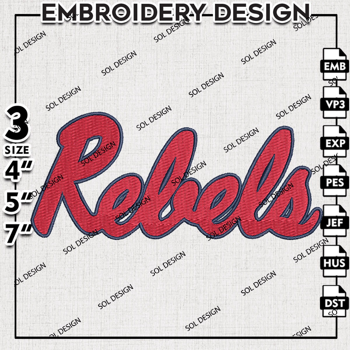 NCAA Rebels College Football Team Word Logo Embroidery Designs, NCAA Ole Miss Rebels Machine Embroidery Files, NCAA Logo embroidery designs, NCAA Ole Miss Logo, Digital Download