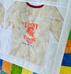 The T-shirt block is a great way to make a truly unique quilt with embellishments. This is a patchwork quilt block and does not include the machine embroidery designs shown in photos. Nor does it include directions for making a full quilt or bias binding for collar.
