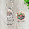 Keychain options: Bottle Opener Keychain are metal and have a 1" image. Round Keychains are made of MDF and are 2". Great for everyday use and make great gifts.
