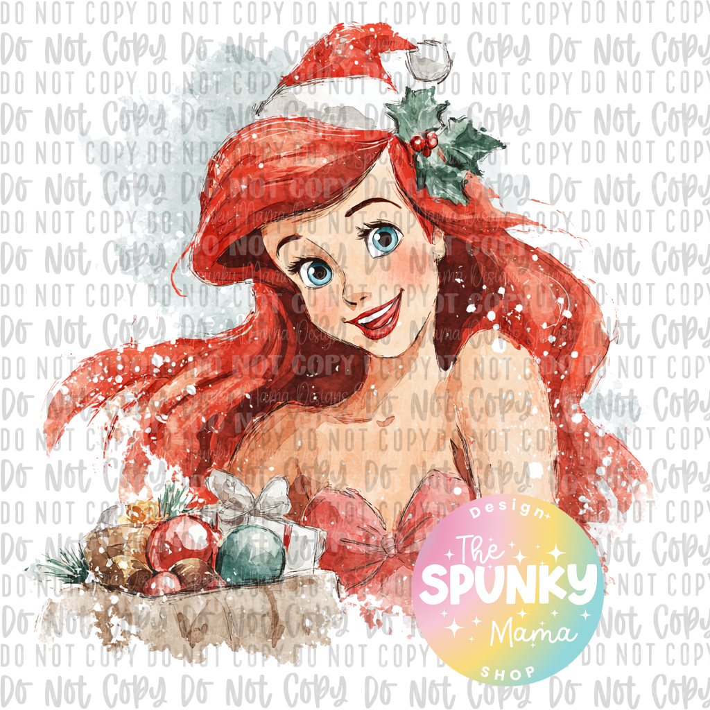 Little Mermaid Christmas Watercolor Digital PNG Clipart