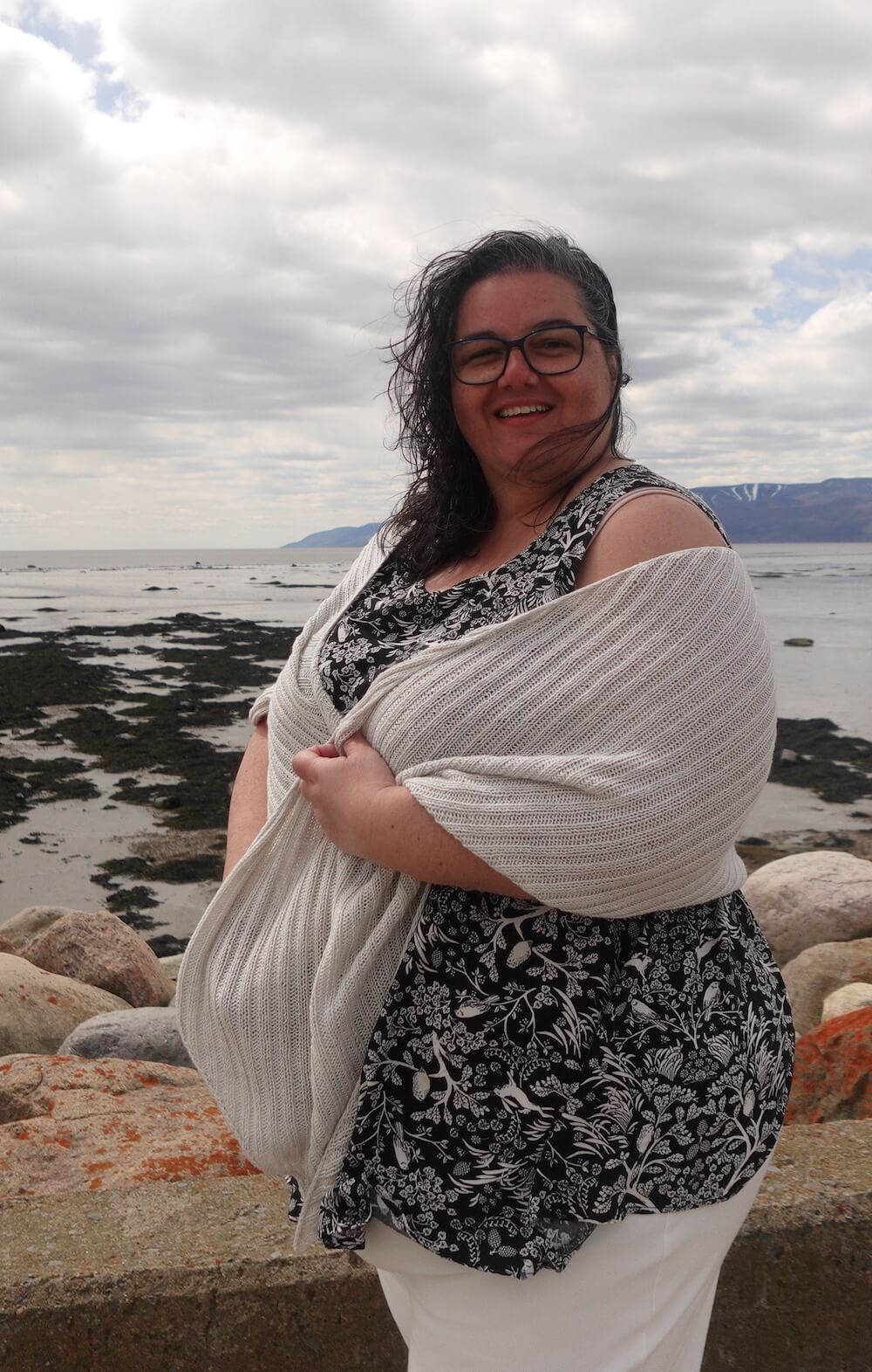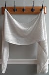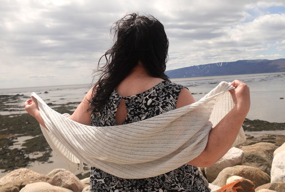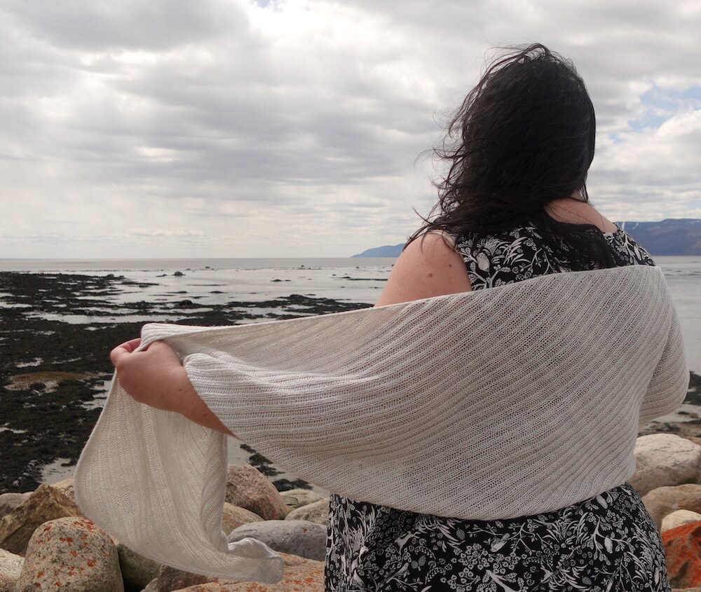 The Charlevoix wrap is perfect for cool summer evenings. The blend of silk and linen gives the finished wrap (and scarf) a wonderful drape, softness, and shine. And with the I-cord edges and K2P2 pattern, it’s completely reversible (just be sure to weave in ends carefully)!