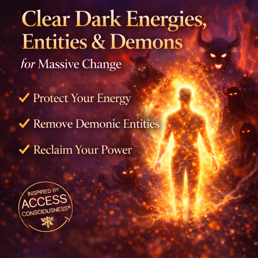 This entity & demon clearing session works with high-frequency energetic tools to: