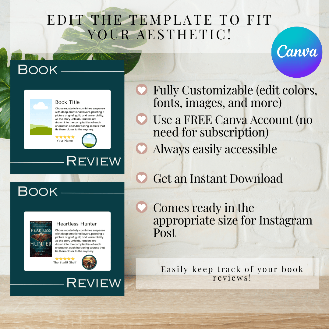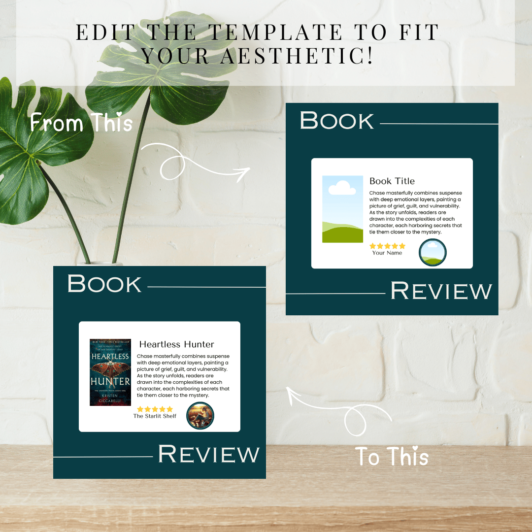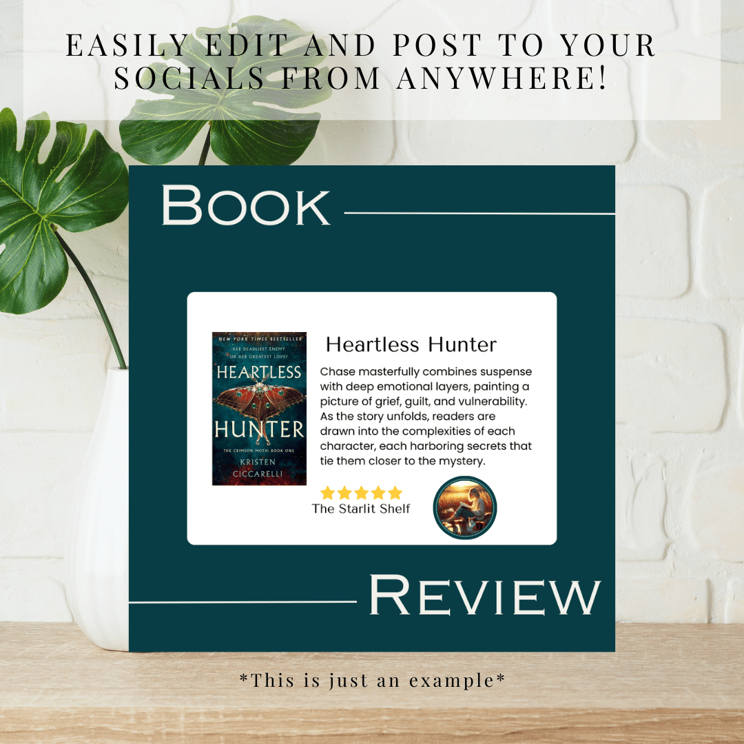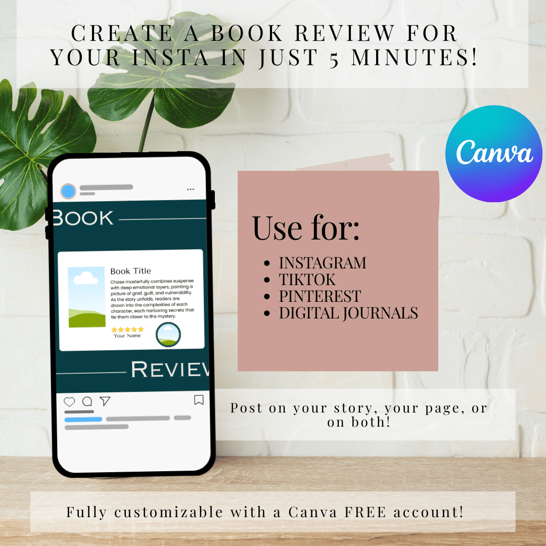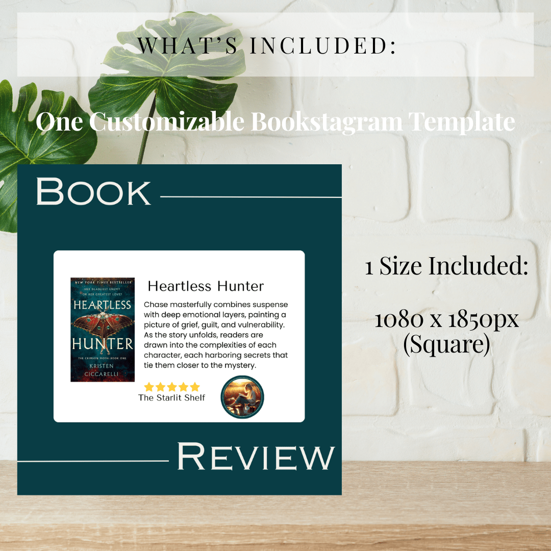 Create beautiful, professional book review posts for any genre with this customizable Instagram template. Whether you’re reviewing fantasy, romance, thrillers, sci-fi, mystery, or contemporary reads, this template helps you share your thoughts while keeping a cohesive and eye-catching Bookstagram aesthetic.