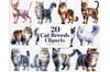 Introducing Realistic Cat Sublimation design you'll ever see! This digital download bundle features a collection of 20 Watercolor Kitten Breeds clipart images that are perfect for any animal lover. With commercial use rights included, these sublimation designs are perfect for personal or commercial use.