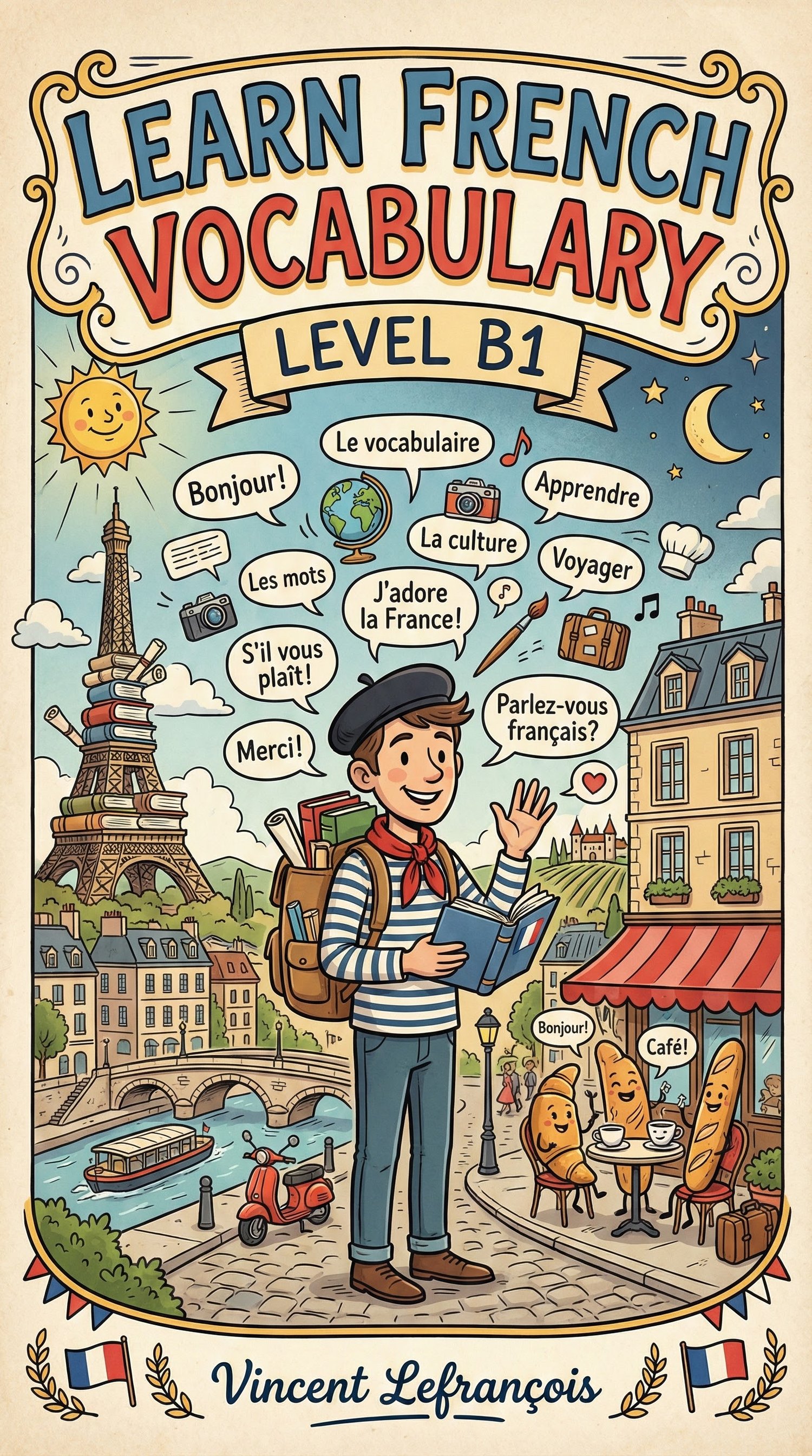 Learn French Vocabulary with Vincent – Level B1 is the third volume of the visual vocabulary series, designed for learners who can already communicate in basic French and want to become more independent.