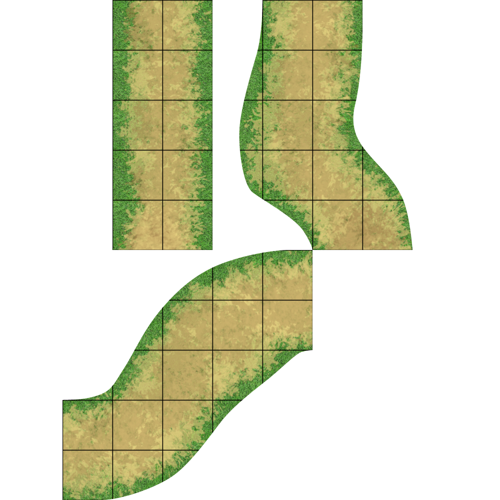 This is the first set of modular pieces I designed for my basic grass map (also available to download for free)! These pieces can be laid down on the map to create many different paths in an unlimited number of various routes! Print out multiple sheets to give yourself even more options, all for free! The grid size is 1 in. x 1 in.