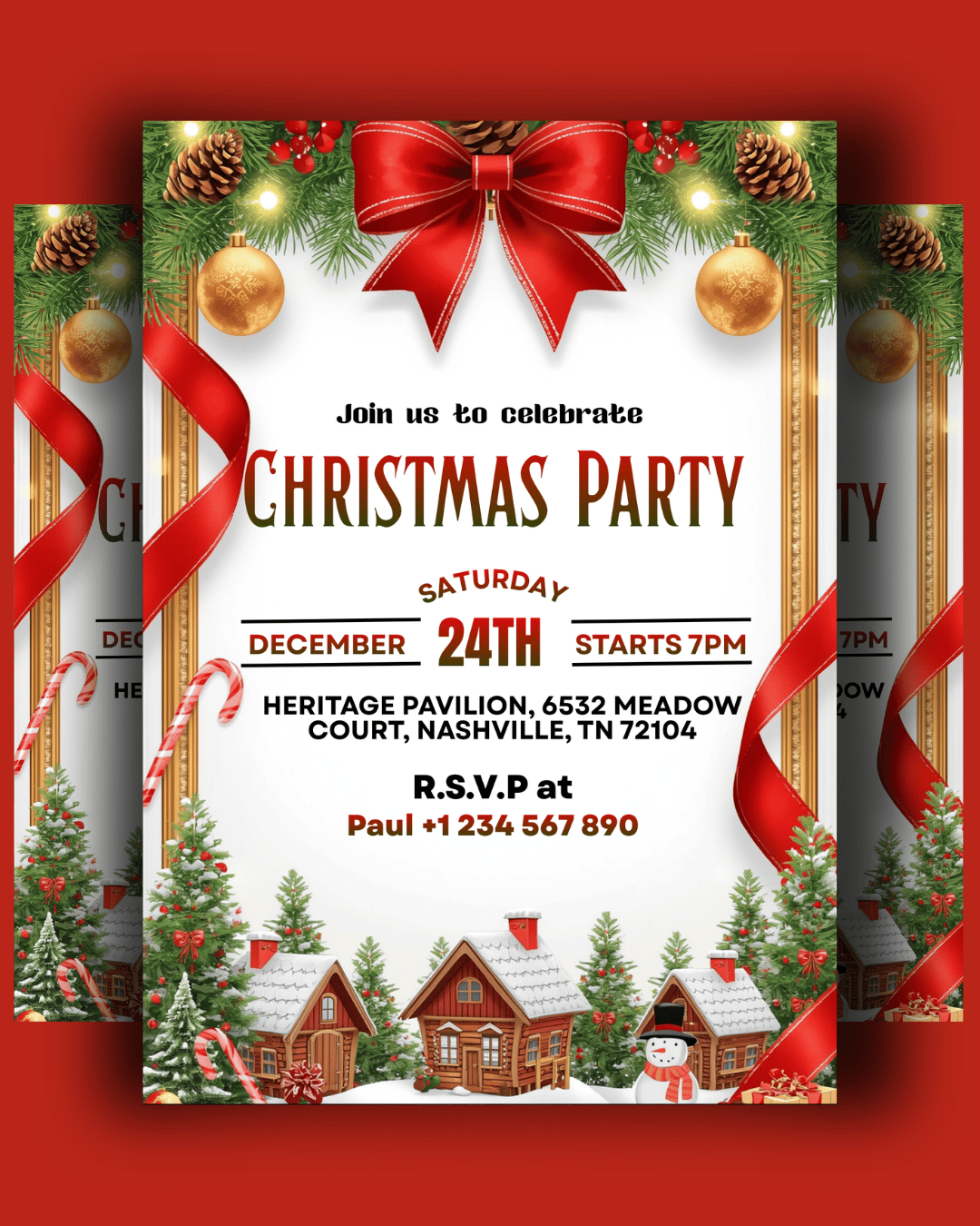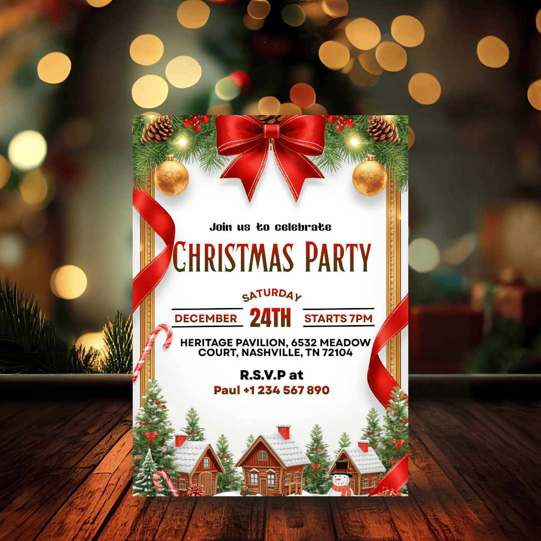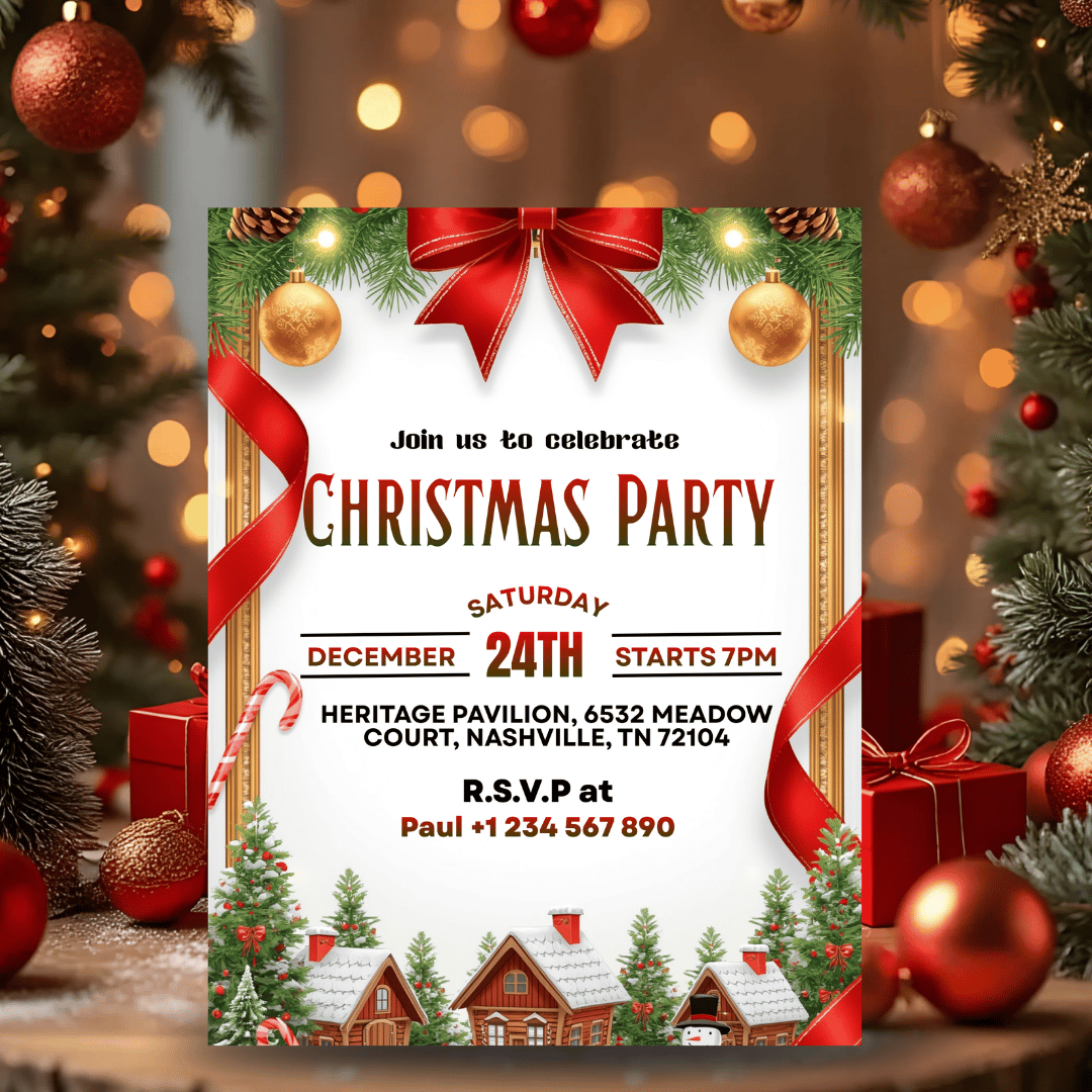 Celebrate the magic of the season with this elegant and festive Christmas Eve Invitation Template, designed to make your holiday gathering feel warm, joyful, and beautifully organized. Whether you're hosting a cozy family dinner, a festive party, or a community celebration, this invitation adds a touch of Christmas charm.