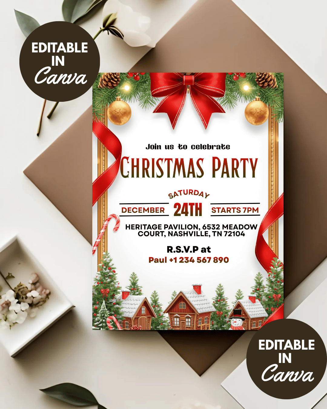 Christmas Eve Invitation – Editable Canva Template