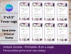 This is a printable 8.5"x11" with 8 editable favor tags. Change the name on each one, save and print. So easy! You can edit everything on this tag: colors, font, size of font and move graphics.