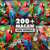 Tropical Bird Design - Vibrant Macaw Layered Paper Art Bundle 200 PNG - Commercial License