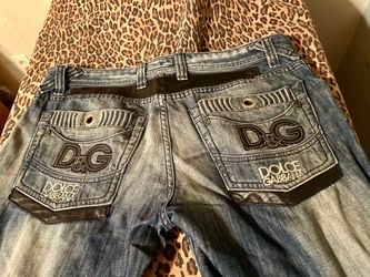 Authentic Dolce & Gabbana Men’s Denim & Leather Jeans 34x34 Missing Top Button AS IS Need Button
