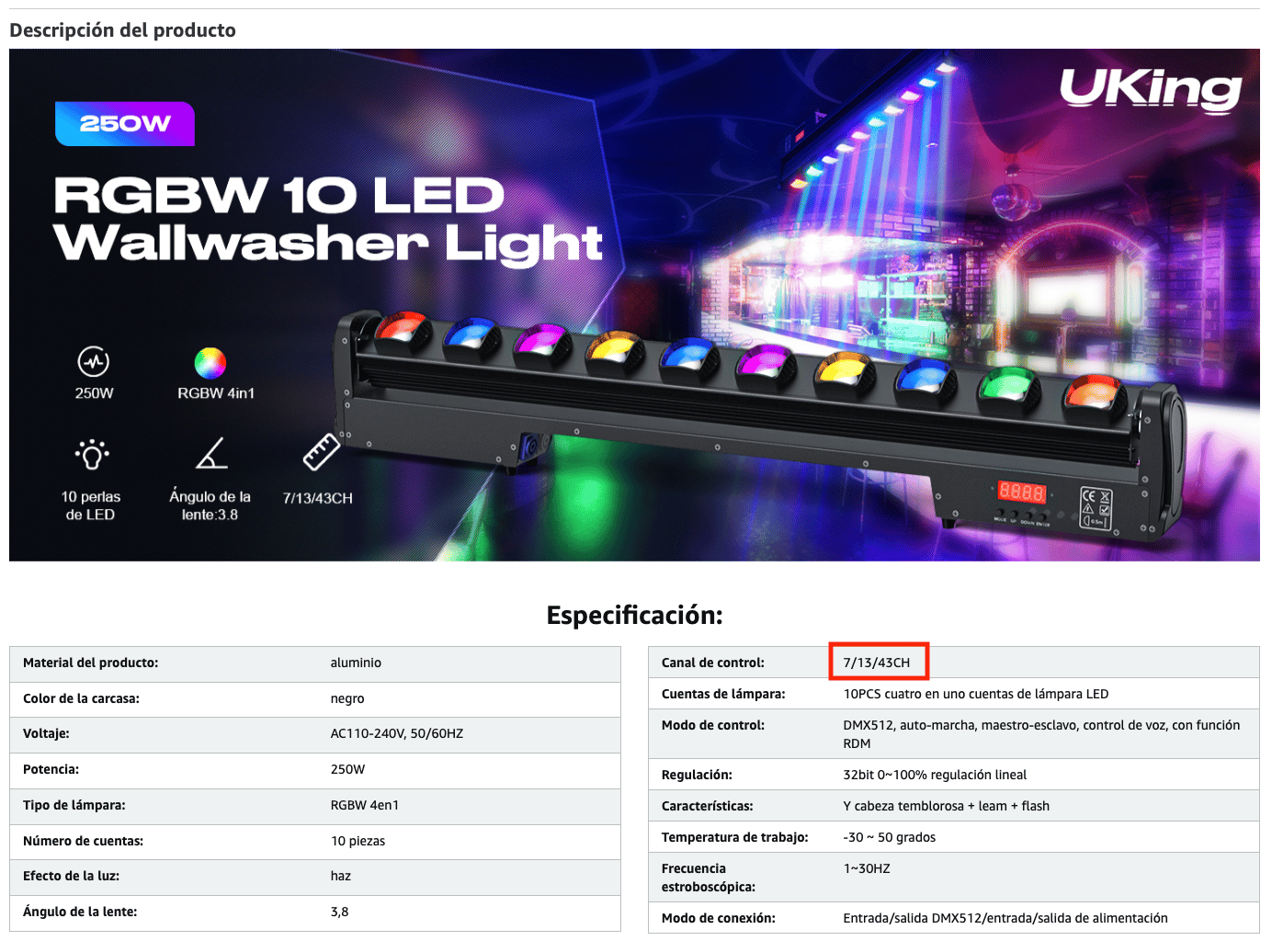 Librería de Magic 3D P/ ZQ06079 de Uking ( 7-13-43ch ) 10 Led Wallwasher 250w