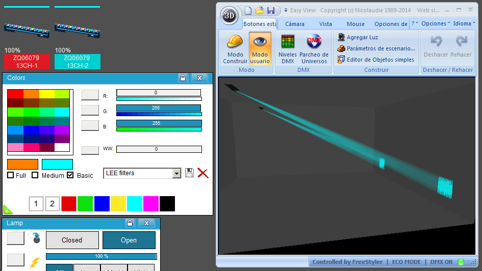 Esta Librería SSL2 está optimizada para trabajar con Magic 3d Easy View. Es decir para ver una representación 3D de las secuencias que estemos realizando con Freestyler, QLC+ o cualquier otro soft que se conecte con Magic 3d.
