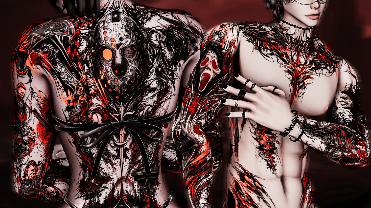 Full-Body Tattoo Set for male and female avatars inspired by classic horror films and slashers.
