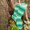 Knit Picks Felici 75% Superwash Merion, 25% Nylon 200m/218yds per 50g, colourway Highland (green self-striping)