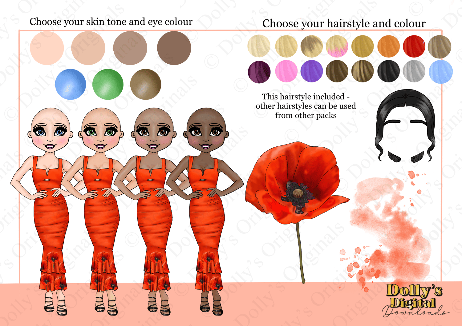 Instant digital download of our Birth Flower August Poppy Doll Character Bundle PNG (34 PNG’s)