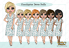 Instant digital download of our Eucalyptus Dress Doll Character Bundle PNG (32 PNG’s)