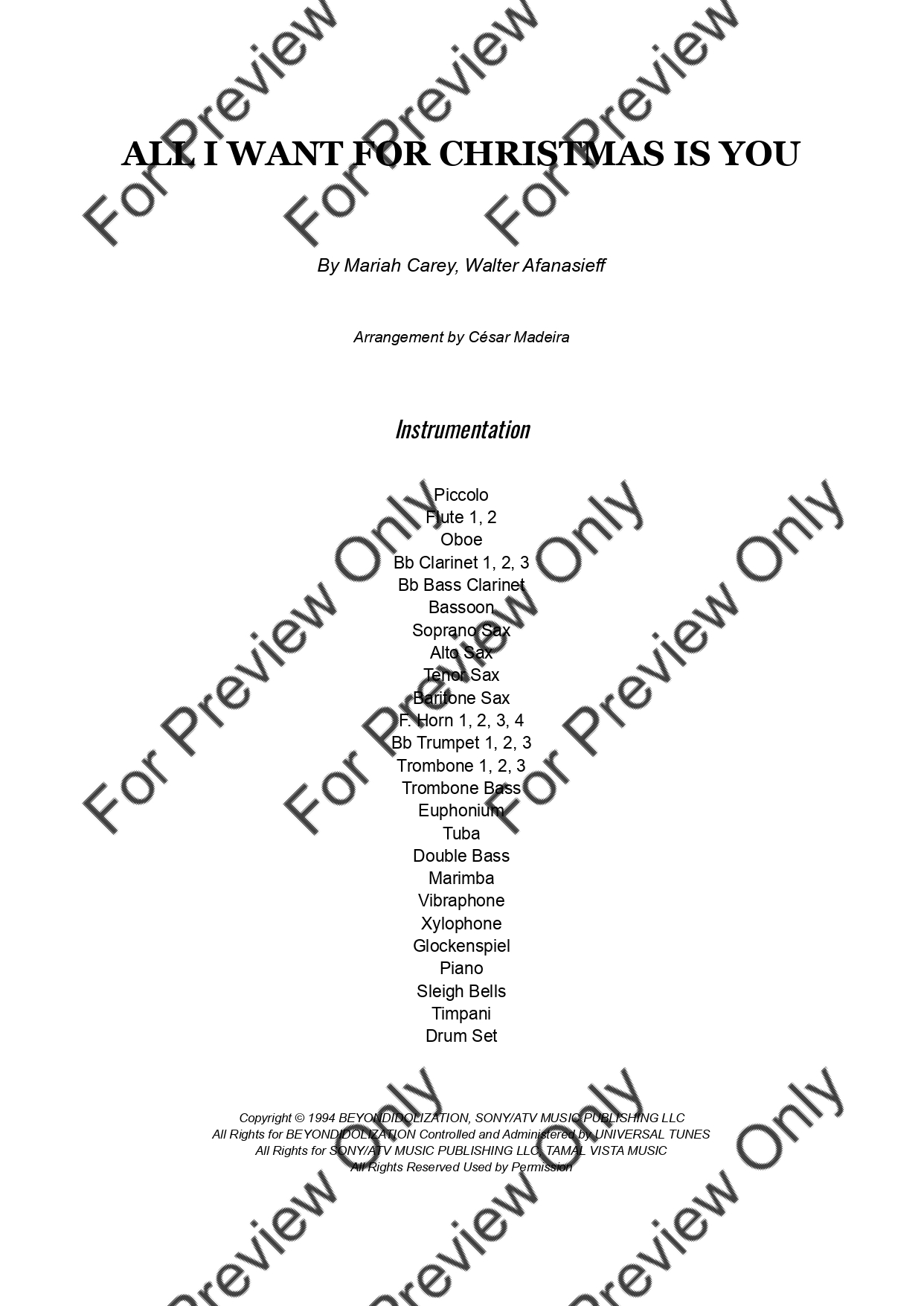 All I Want For Christmas Is You by Mariah Carey. Arrangement for Concert Band. With Full Score and Individual Parts. Have fun!
