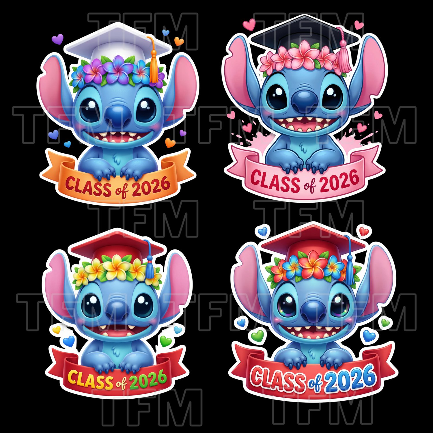 Introducing this Stitch Inspired Graduation Sticker Set – the perfect touch for all your grad creations! Whether you’re designing tees, party favors, foam letters, chip bags, banners, or custom props… this 4-piece sticker bundle is giving