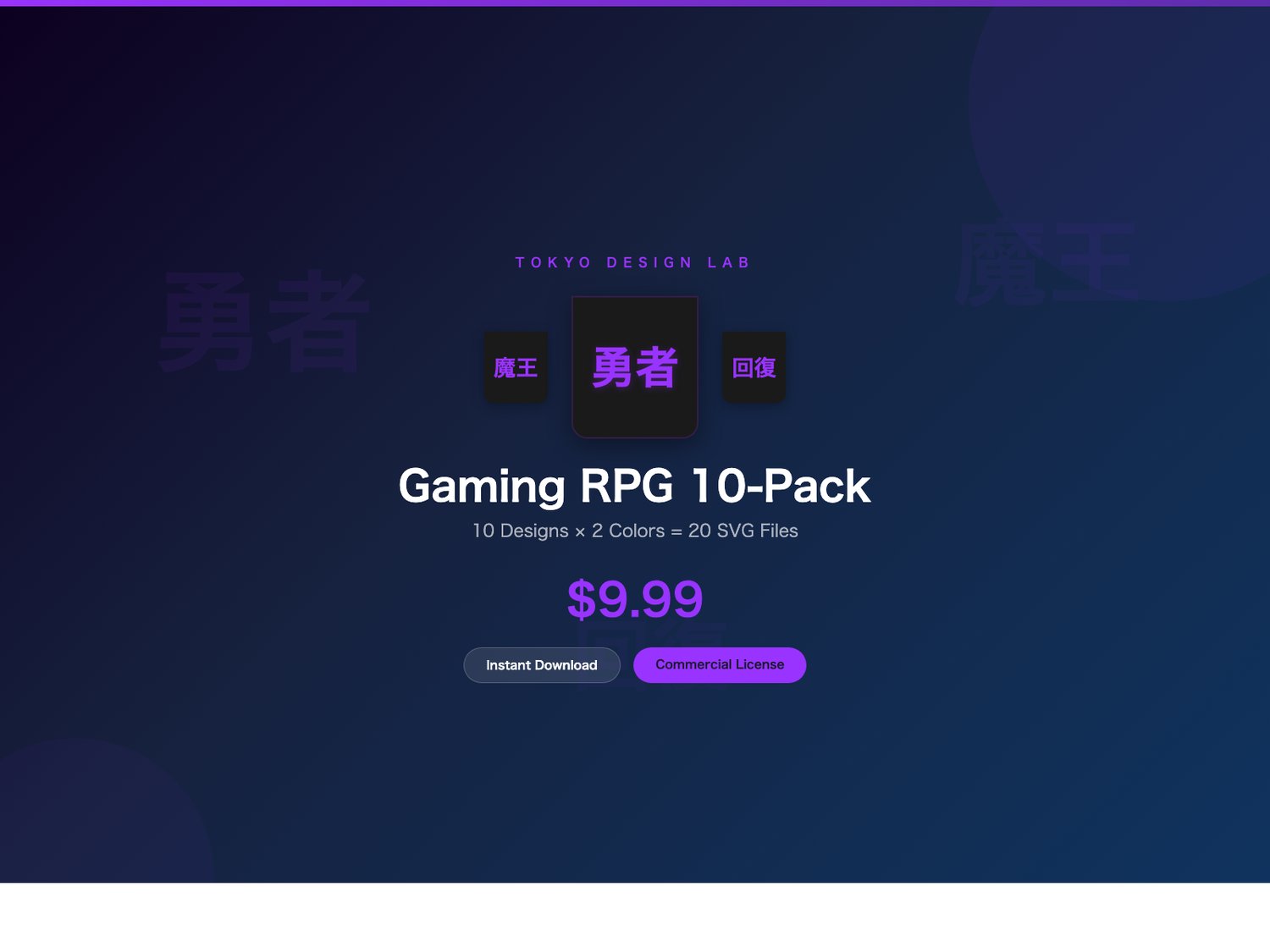 10 epic Japanese RPG and gaming culture designs = 20 SVG files total.