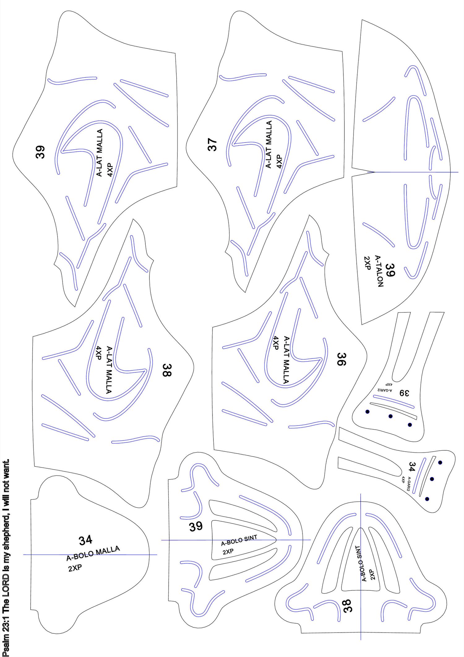 patrones en PDF hoja A3 conprimido WinRar, serie del 34 AL 39.