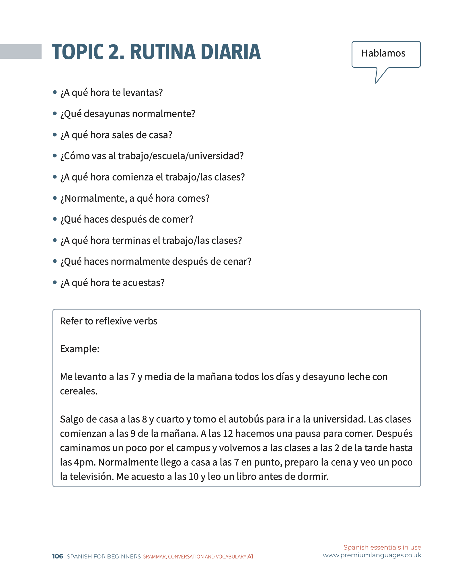 This new manual is aimed for students who want to learn Spanish the fast way with loads of exercises to practice. It is structured in 4 parts:1. Grammar - All essentials are clearly explained in English. Even if you are not familiar with grammar and its jargon, everything is presented clearly and there is plenty of practice just after each new grammatical content is introduced.