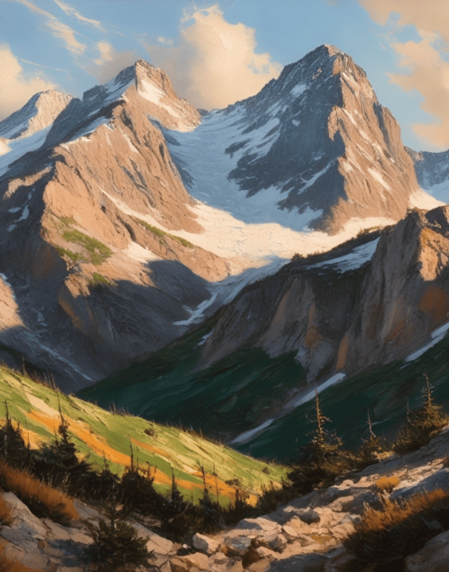 Mountain Landscape, Beautiful Valley, Glacier, Mountain Wall Art, Vintage Landscape, Nostalgic Nature, Cool Nature, Rustic natural Landscape, Painting.