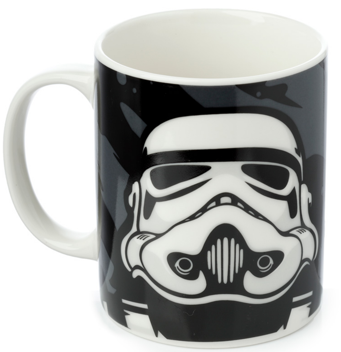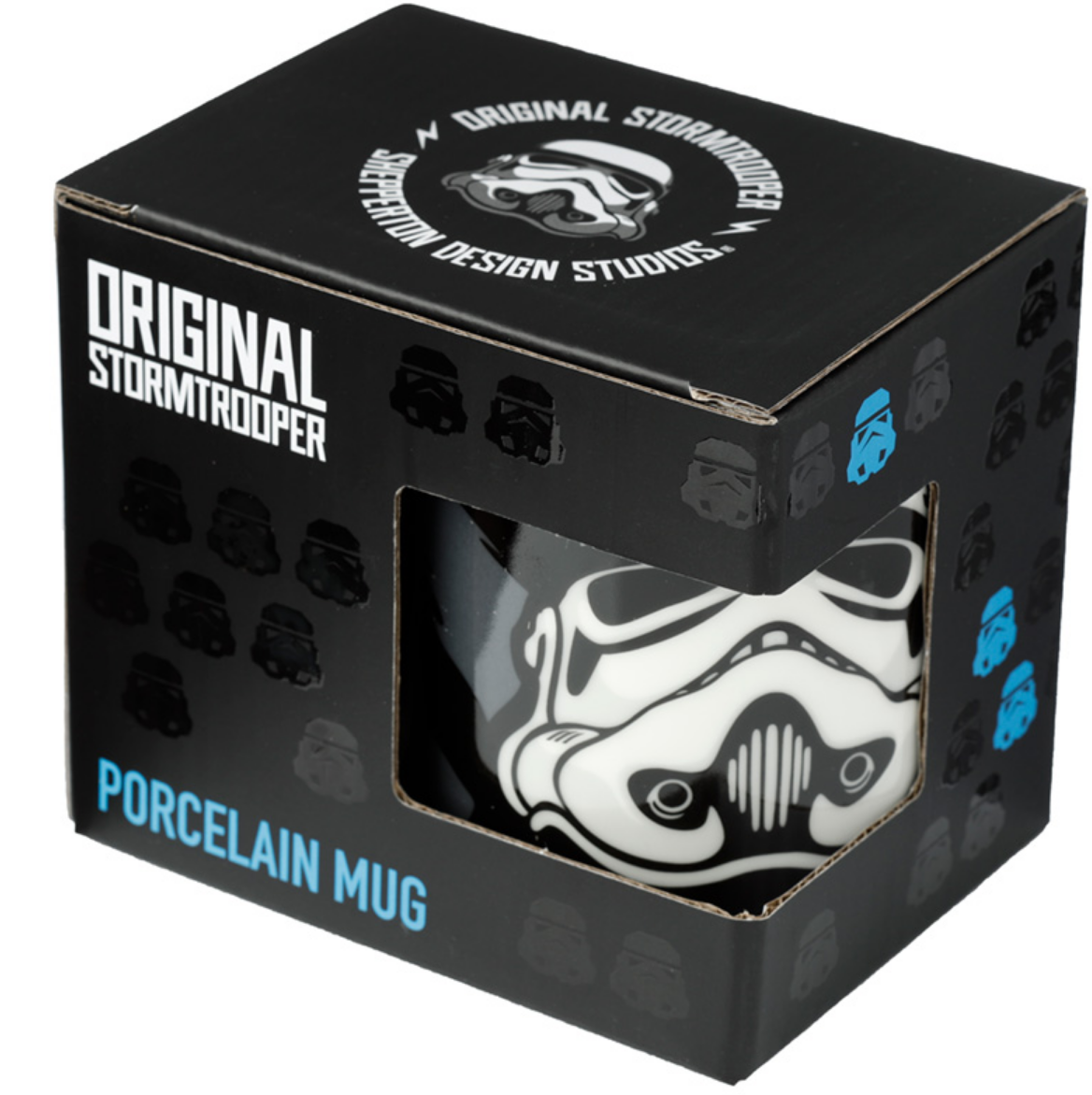Enjoy your favorite beverages in style with this striking black porcelain mug featuring the iconic Stormtrooper design. With a comfortable handle and generous capacity, it's perfect for coffee, tea, or any drink that fuels your day (or galactic adventures). Sip in style and show off your love for the classic franchise!