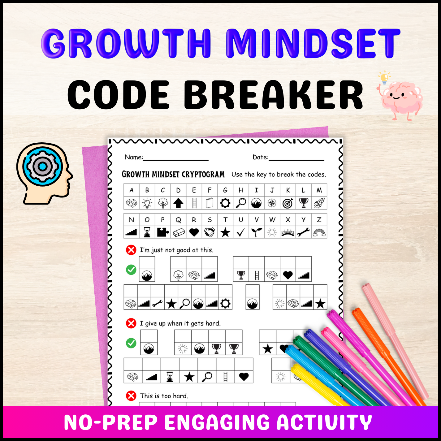 Growth Mindset Cryptogram Code Breaker Worksheets for Social-Emotional Learning