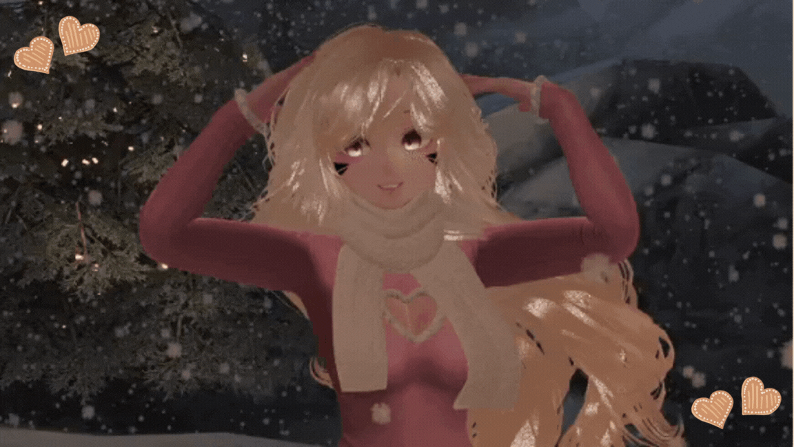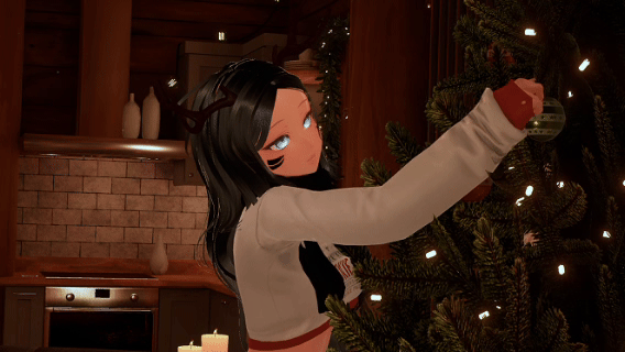 - Body, Head Edit/Textures/Earings, Skin Textures, Eye Textures, Animations, Hair 1, Hair 2, Hair 3, Undergarments, gingerbread set/dress 2/pj set, dress/deer parts, leg warmers/arm warmers/boots/scarf, harness/thigh highs, Santa hat, slippers/socks