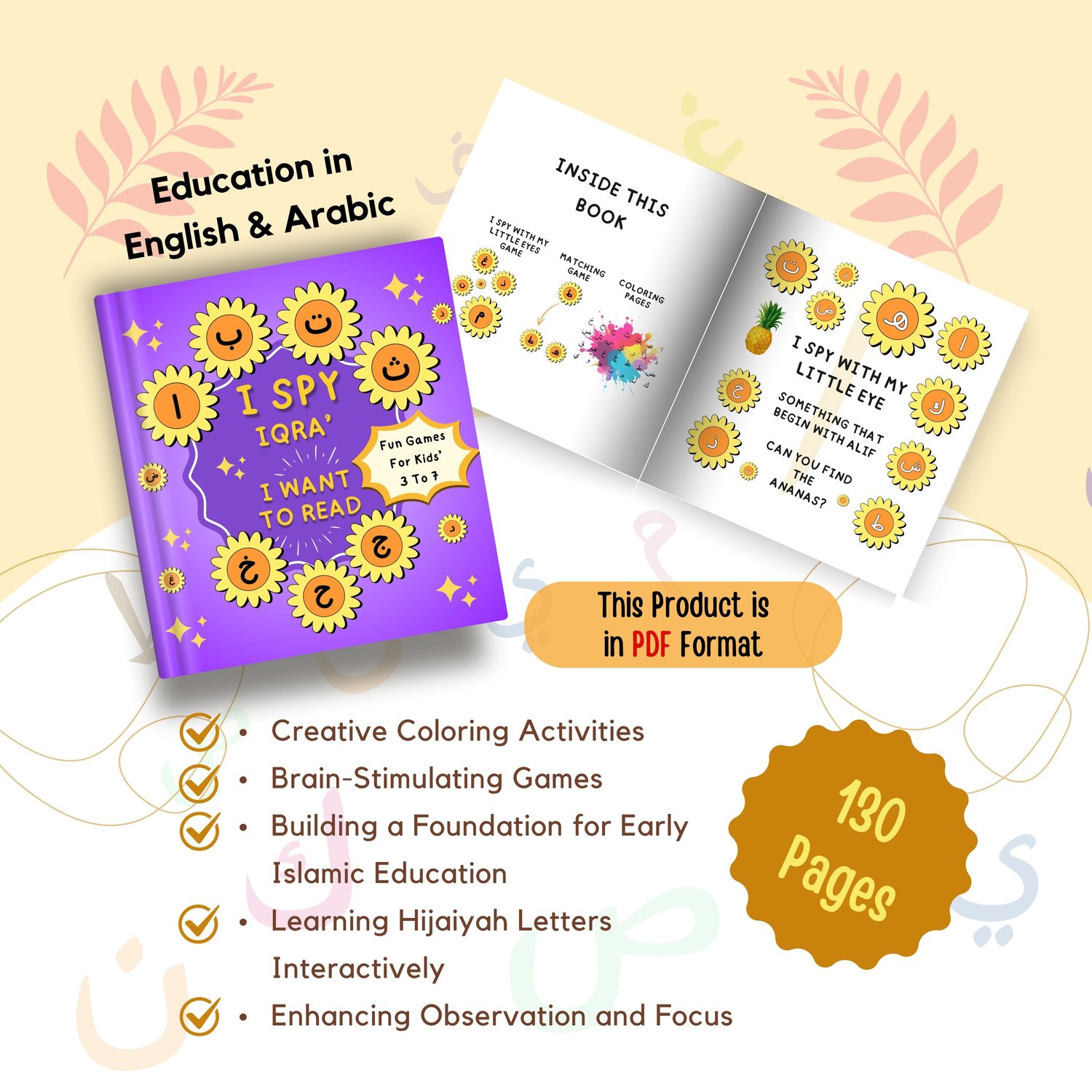 Give your child a joyful and engaging start in learning the Arabic alphabet! IQRA’ FUN transforms early Islamic education into an exciting experience with I-Spy games, tracing pages, coloring sheets, and cognitive puzzles designed to build recognition, focus, and confidence.