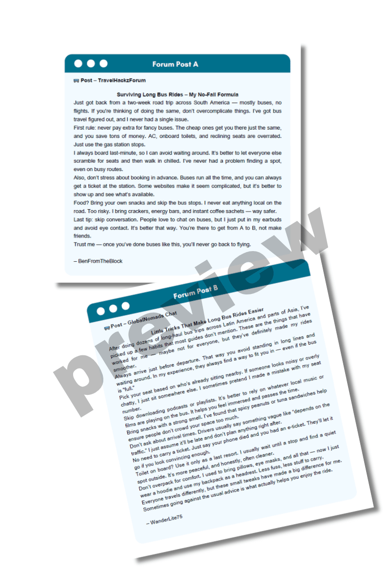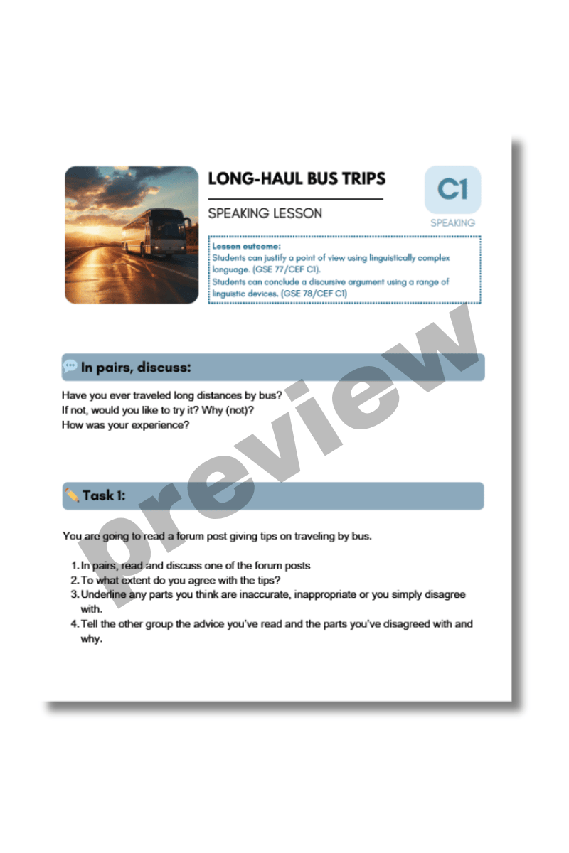 This lesson is designed to engage advanced learners in authentic discussions about unconventional travel experiences, using long-distance bus journeys as a starting point for critical thinking, vocabulary expansion, and cultural exchange.