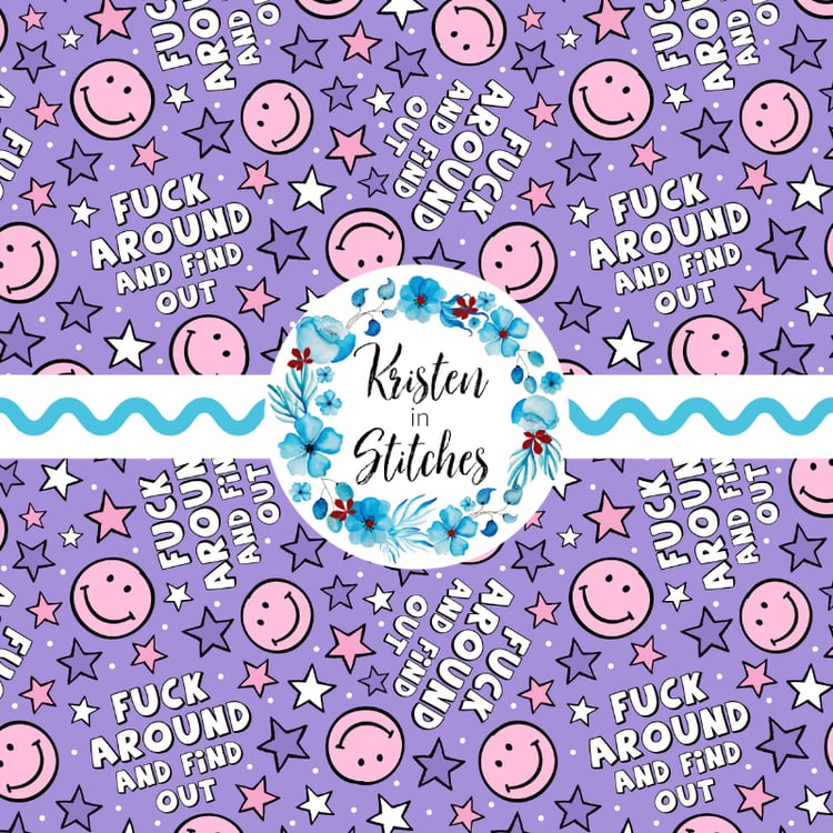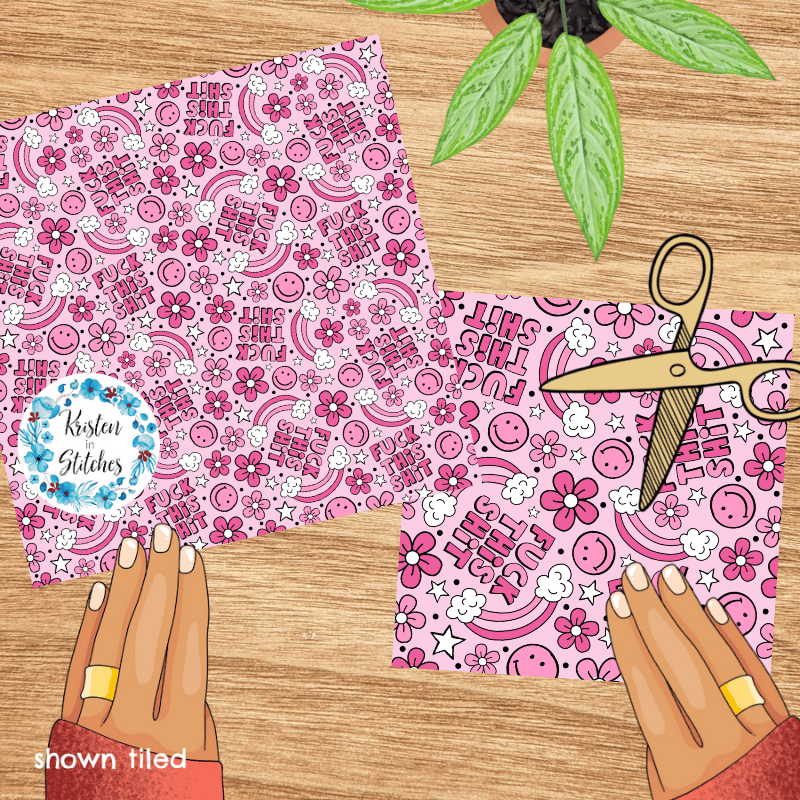 Fuck This Shit Swear Word Seamless Pattern, Pretty Profanities, Rainbows and Happy Faces