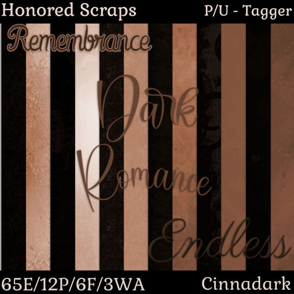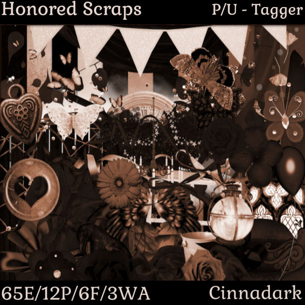 Cinnadark is a tagger kit that consists of 65 elements, 12 papers, 6 frames and 3 word art.