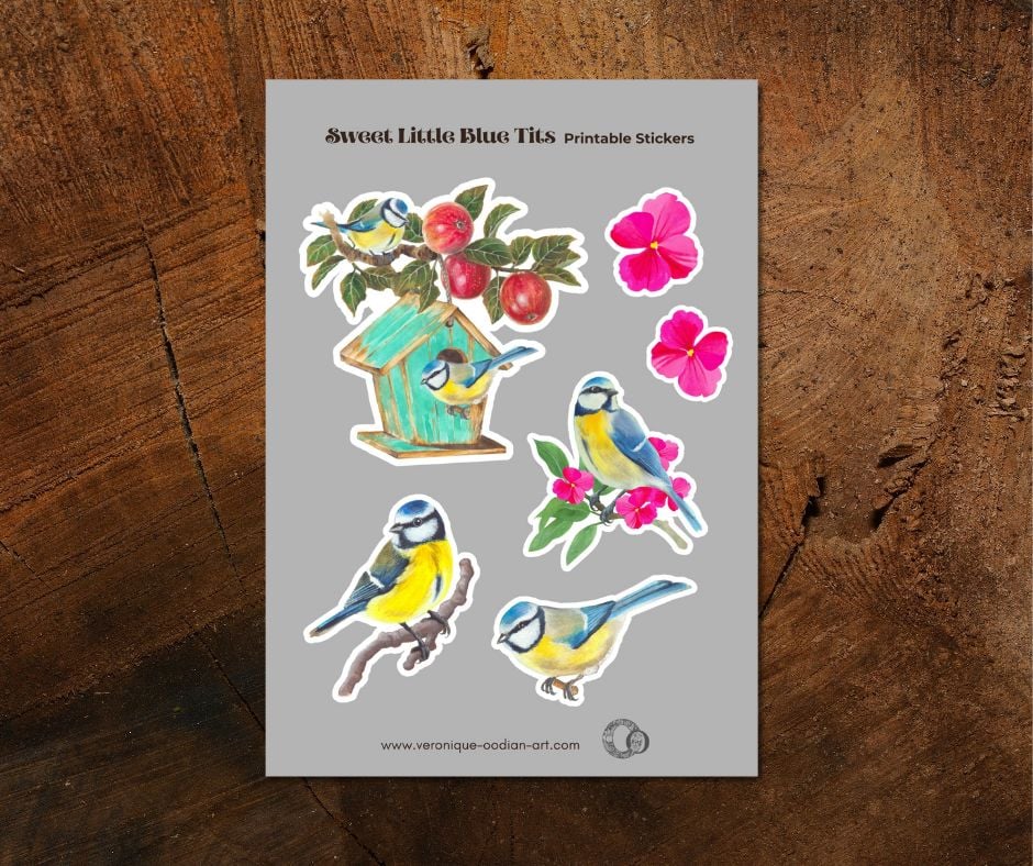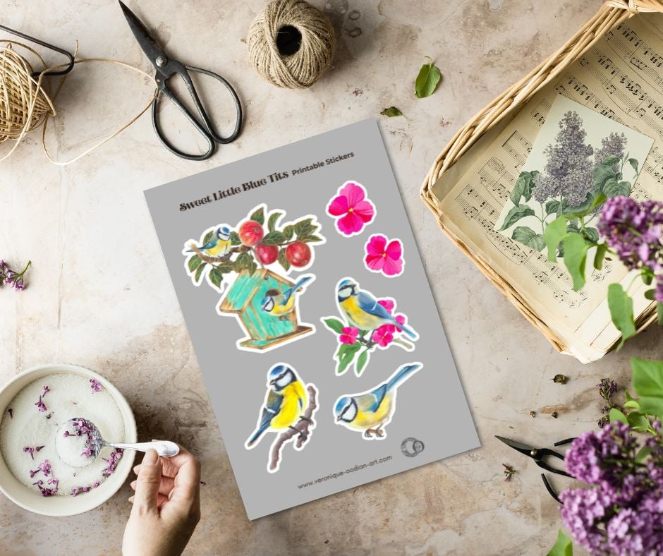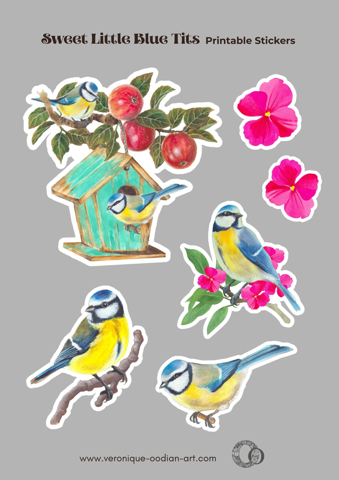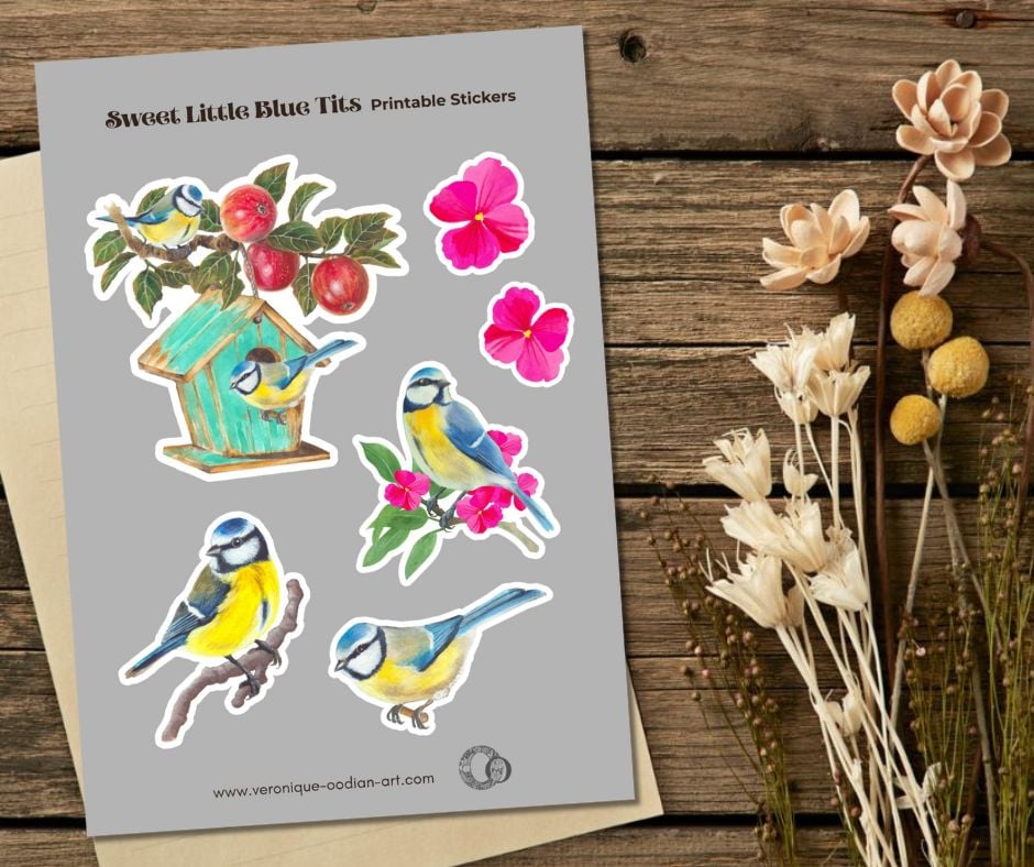 Sweet Little Blue Tits Printable PDF Sticker Sheet
